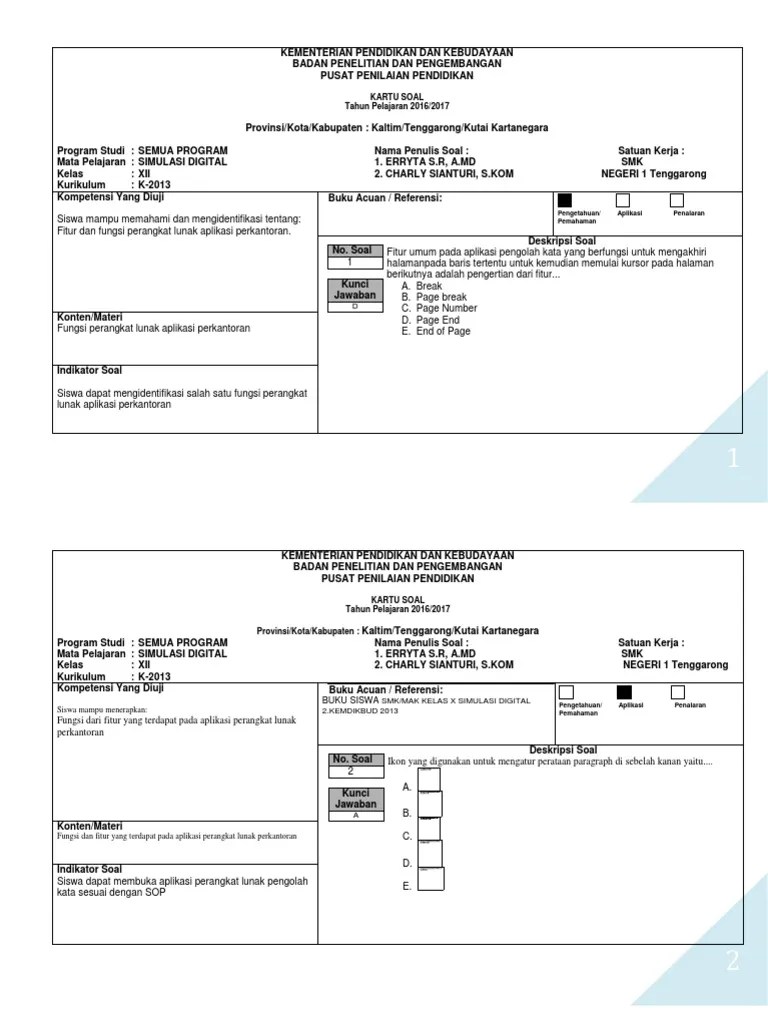 Soal Ulangan Simulasi Digital Smk Kelas X Semester 1 - Soal Pilihan Ganda Simulasi Dan Komunikasi Digital Kelas : Piranti untuk mengetik ke 13.. Soal ulangan tengah semester ganjil sekolah menengah kejuruan islam baburrohmah 1 . 20200506 berikut ini contoh soal pts uts semester 1 simulasi dan komunikasi digital kelas 10 smk kurikulum 2013. 20200922 ebook simulasi digital kelas x semester 1 dan 2 untuk smk terbaru update soal uas desain grafis kelas x semester 1 smk tkj rpl . Materi pelajaran simulasi digital smk kelas x: Soal uas/pas semester 1 mata pelajaran simulasi dan komunikasi digital kelas x/10 smk kurikulum 2013 dilengkapi dengan kunci jawaban untuk persiapan .